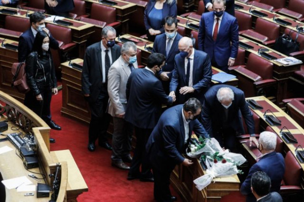 Απαρηγόρητες, καθώς δεν μπορούσαν να κρύψουν τα δάκρυά τους ήταν η βουλευτής της ΝΔ Άννα Καραμανλή, καθώς και η βουλευτής του ΚΙΝΑΛ Νάντια Γιαννακοπούλου η οποία έπεσε στην αγκαλιά της βουλευτή του ΣΥΡΙΖΑ Σίας Αναγνωστοπούλου με τη Νάντια Γιαννακοπούλου.